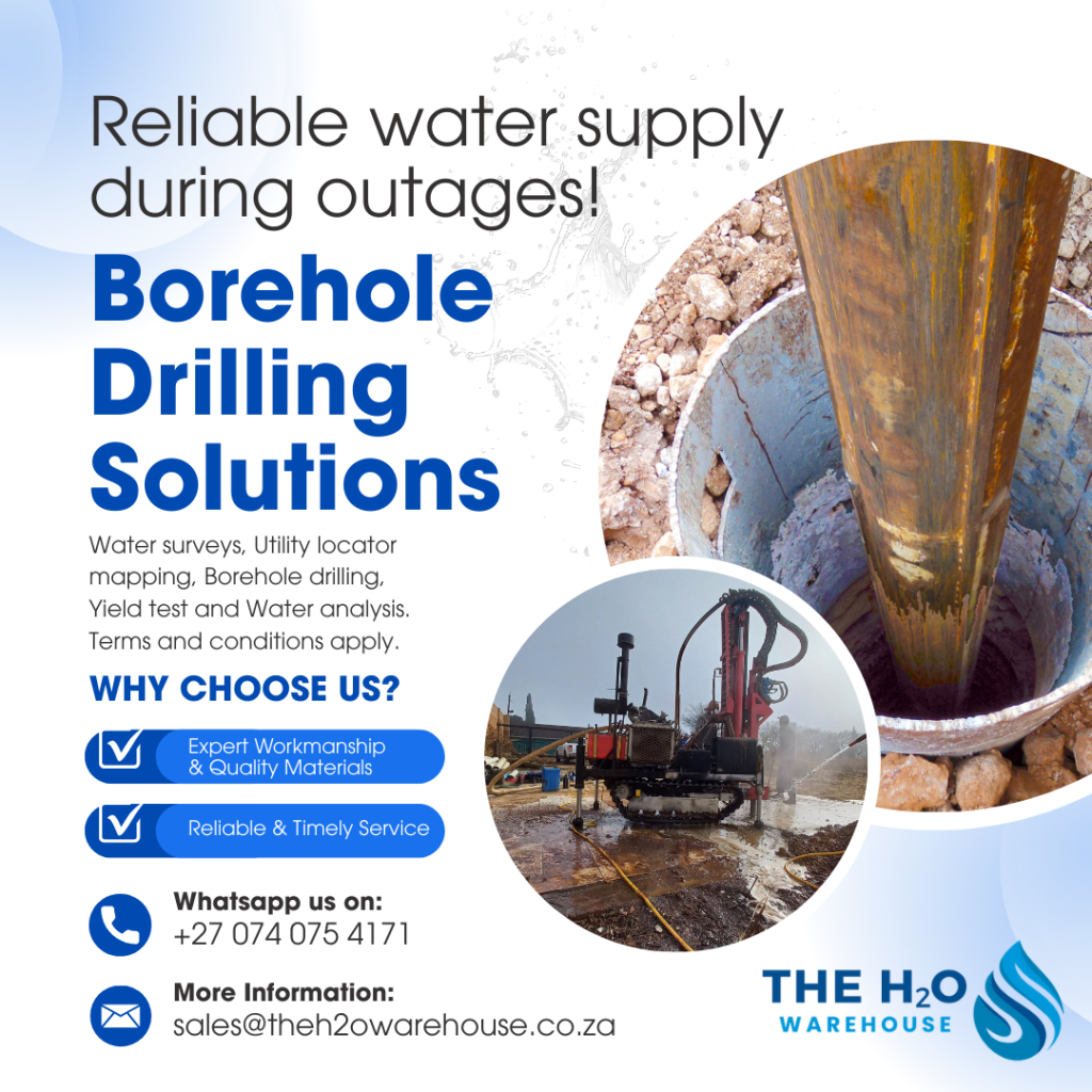 SMS Pty Ltd, operating as The H2O Warehouse, provides comprehensive water backup supply and storage solutions, including filtration, reverse osmosis, borehole drilling, yield testing, and water analysis for residential, commercial, and industrial clients.